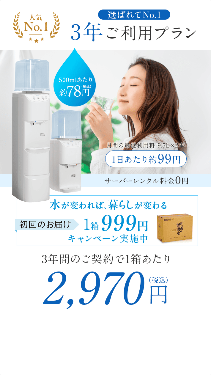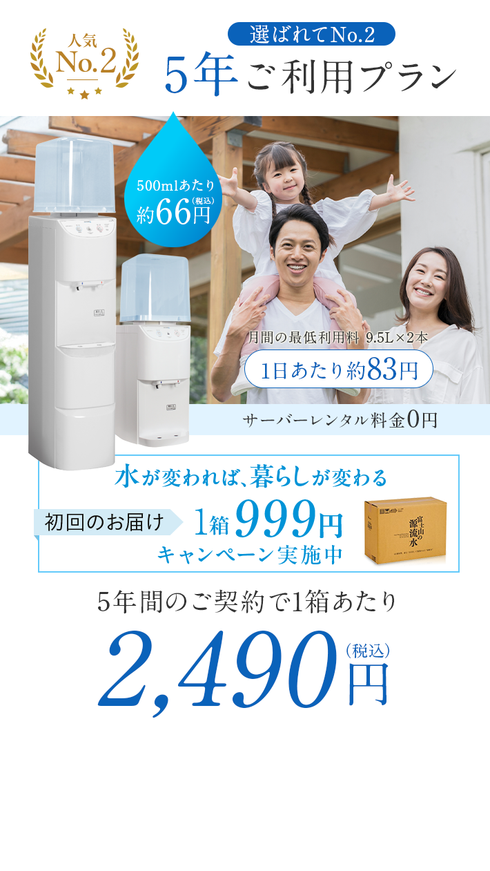 5年ご利用プラン 2,490円(19L) 1Lあたり約131円 |